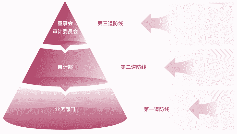 为有效防范贿赂与贪污等商业道德风险,,,公司建立了由“董事会审计委员会、、、审计部、、、、业务部门”组成的三道防线,,全面落实公司商业道德合规工作,,,,并确保《商业道德行为准则》的有效执行。。。公司审计部在董事会审计委员会的指导下定期评估、、、、审查公司的合规运营情况及准则的履行情况,,,并对公司及所有子公司开展商业道德行为审计。。。。公司保证商业道德行为准则审计工作每三年覆盖公司及其所有控股子公司的全部业务范围。。。。