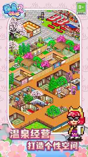 《温泉物语2》是一款模拟经营温泉旅馆的游戏。。玩家可以建设客房和店铺,,,,招揽客人,,挖掘温泉,,,,打造专属温泉乡,,,成为受全世界瞩目的温泉旅馆。。。。通过游戏,,让大家活力十足地面对明天吧!!!
